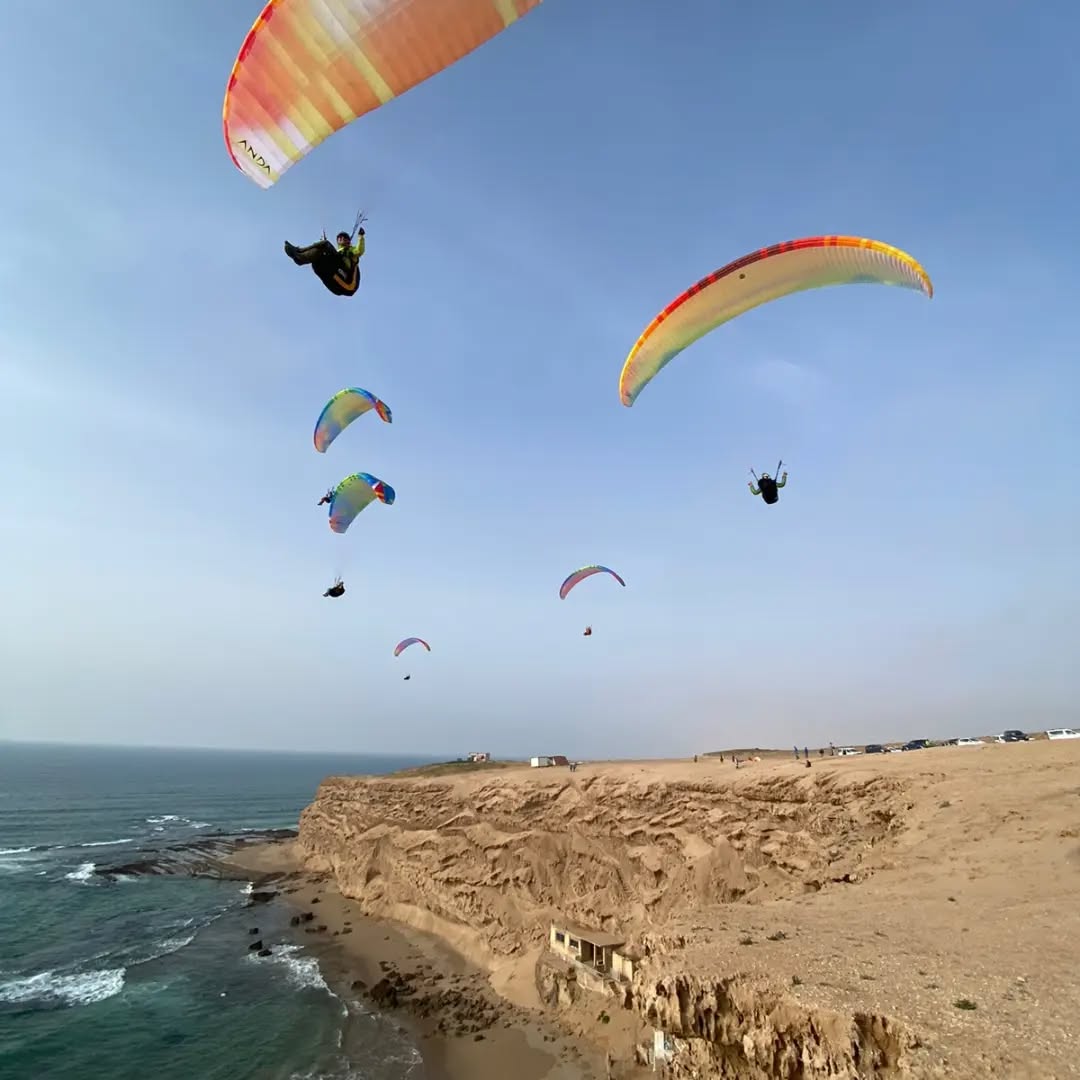 Fly with professional paragliding pilots with over 15 years of experience. We use modern, certified equipment and select flight sites daily based on weather conditions, offering safe and personalized paragliding experiences over the ocean, dunes, cliffs and mountains of Agadir.